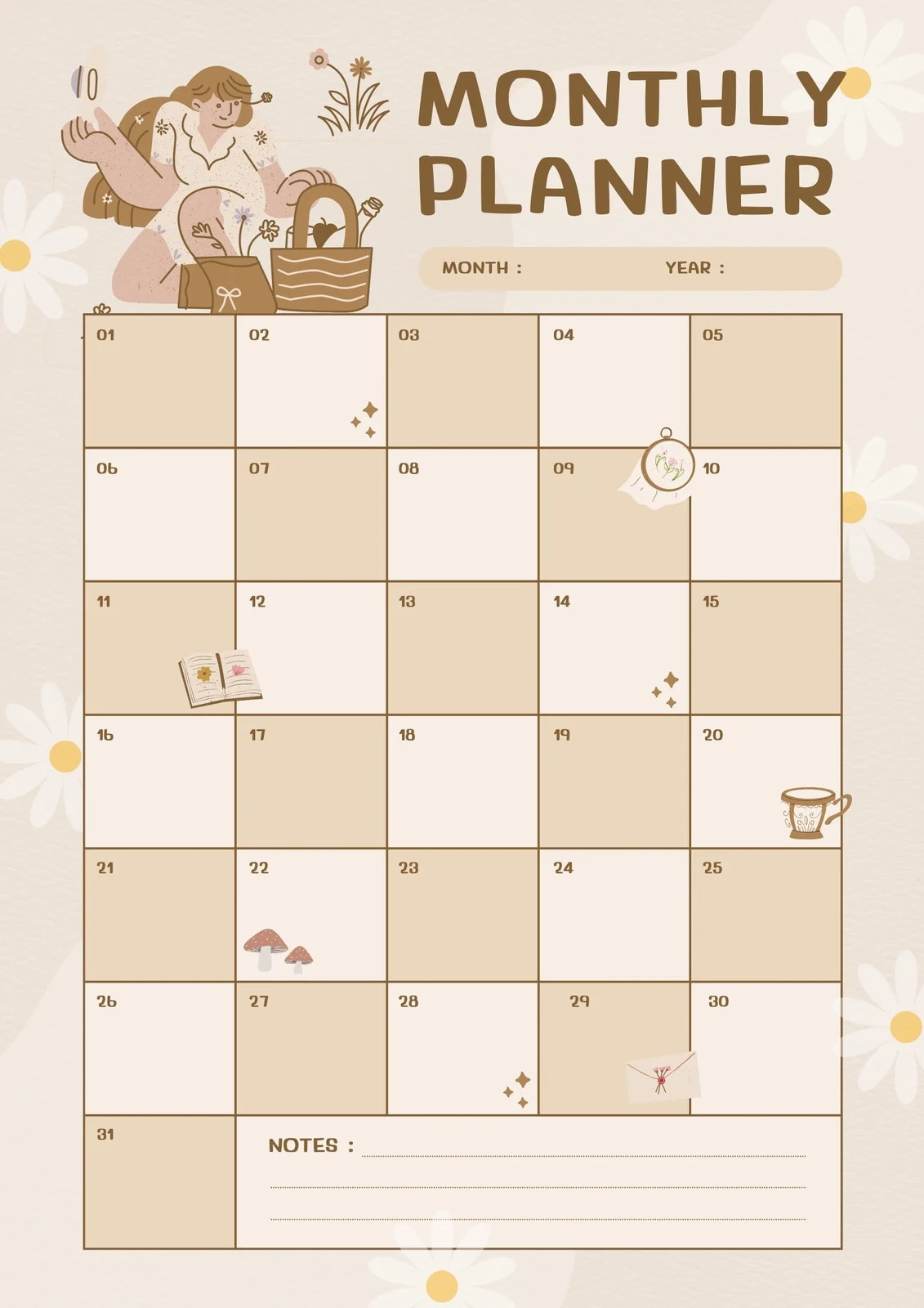 Cute Printable Monthly Planner Template